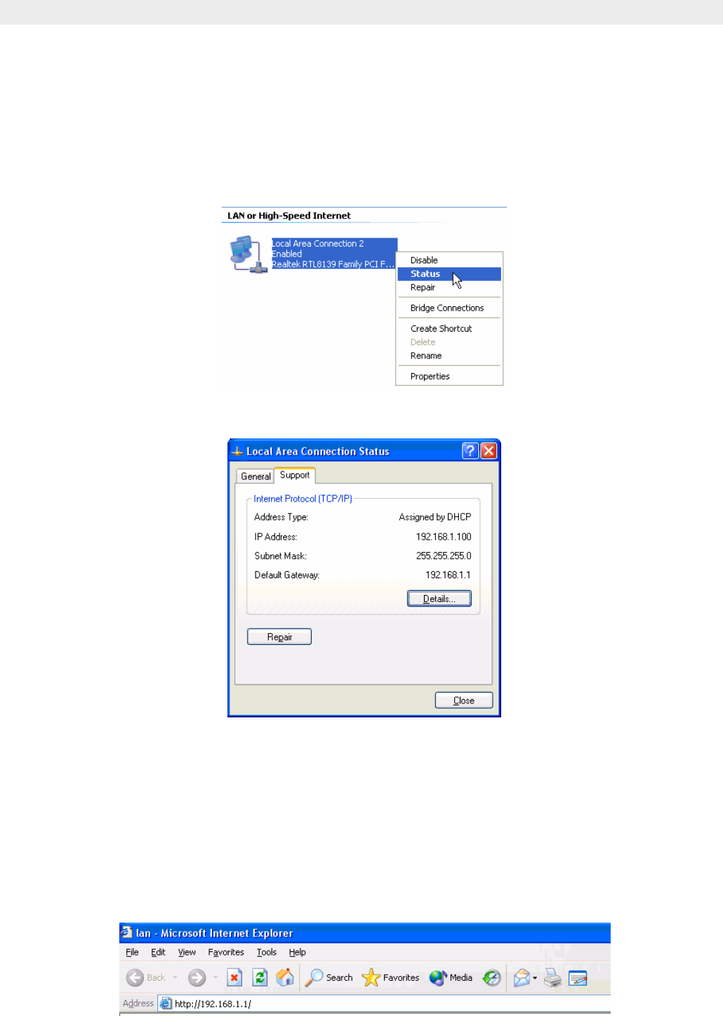 Öfnnen Sie den Internet Explorer und gehen Sie zu Adresse: 192.168.1.1